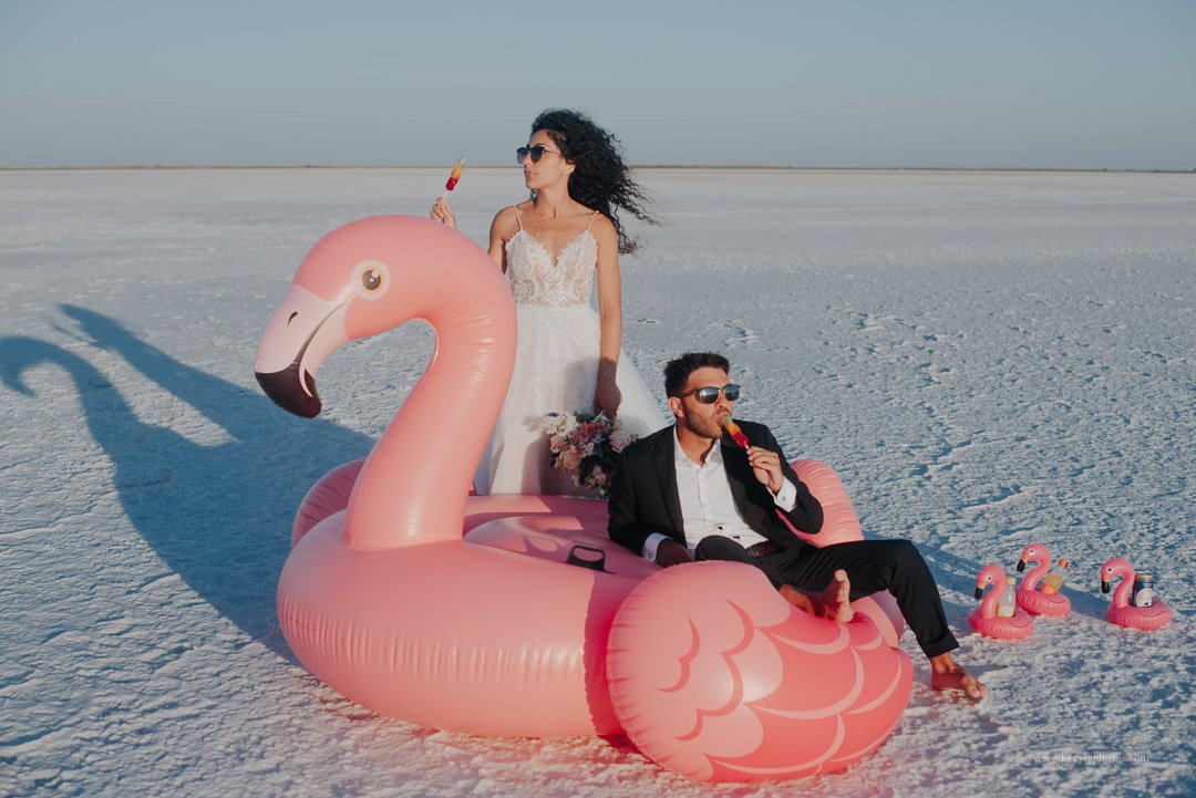 Flamingos & Salt Flats: A Wildly Chic and FUN Wedding Photoshoot on the Greek Islands