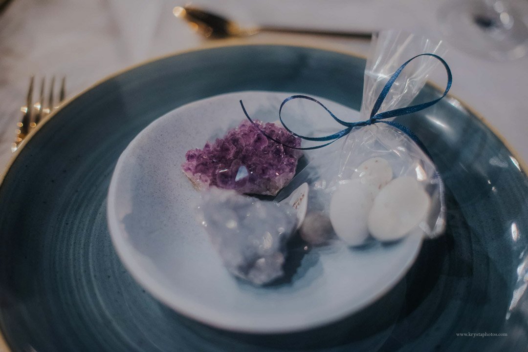 Personal touches? Oh yes. Each guest received a marble or amethyst rock, paired with traditional Greek “bobonieres” – a nod to local customs with a chic twist.